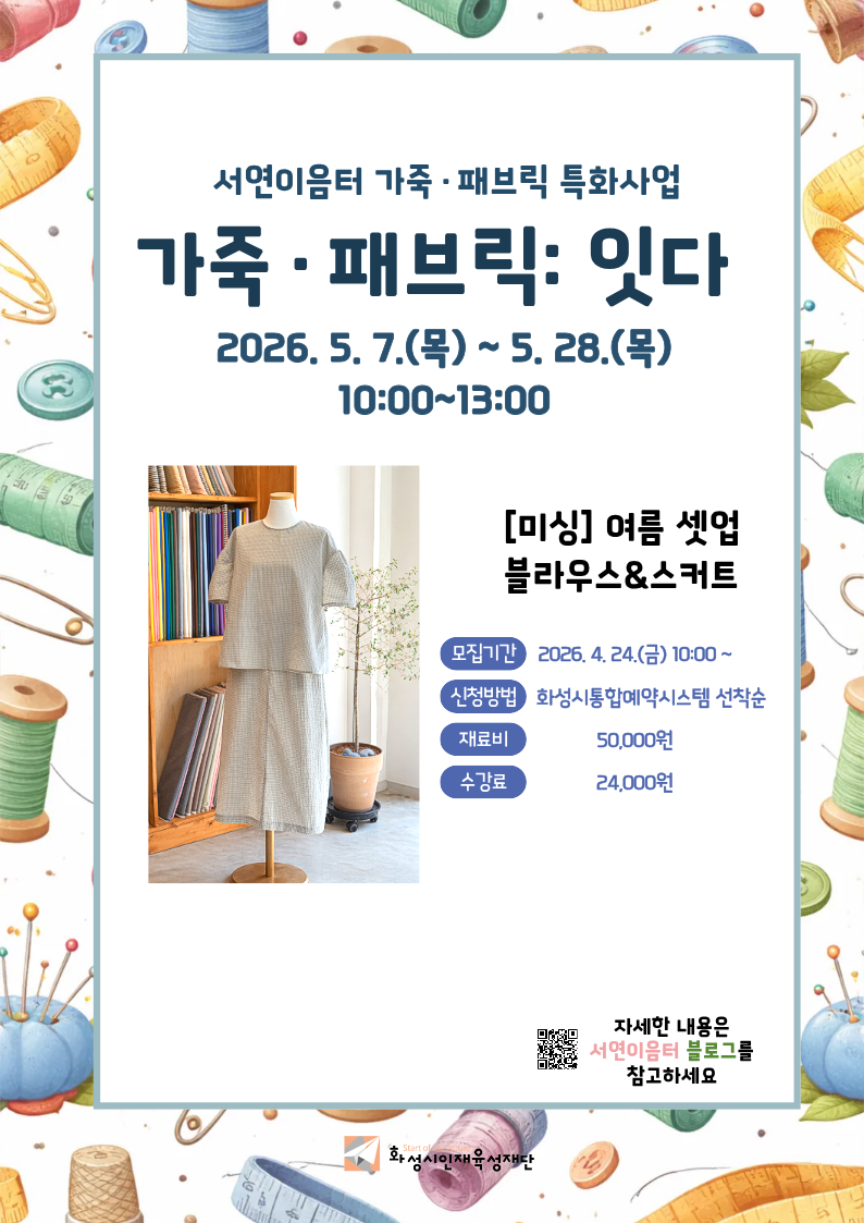 [서연이음터] 수준별 다회차 프로그램 「가죽·패브릭: 잇다 2기 - 여름 셋업 블라우스&스커트」