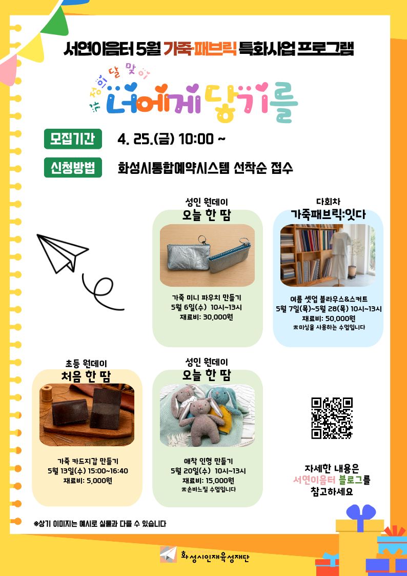 - 운영장소: 서연이음터 1층 워크스튜디오 패브릭공방