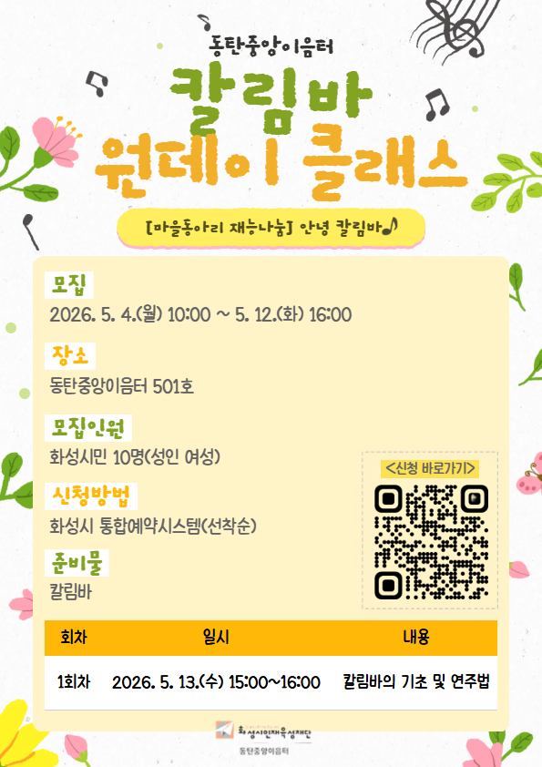 동탄중앙이음터 마을동아리 '맘스칼림바'가 재능나눔 활동으로 [칼림바 원데이 클래스] 수업을 운영합니다.
