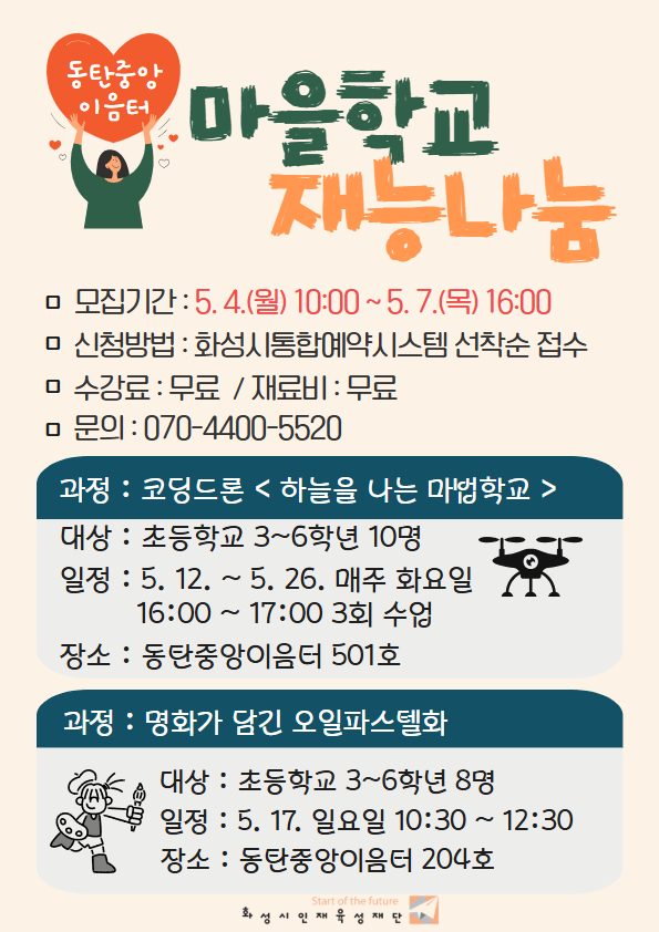 동탄중앙이음터 마을학교 재능나눔 프로그램을 시작합니다