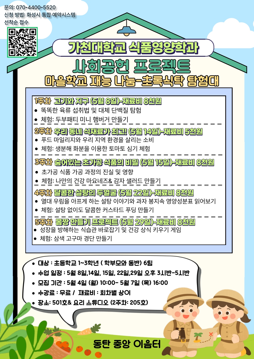 가천대학교 식품영양학과 사회공헌 프로젝트와 동탄중앙이음터 마을학교 재능나눔이 함께 합니다.